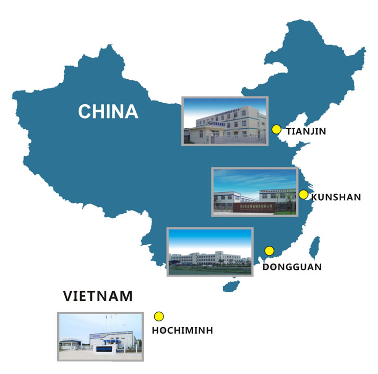 友成分别在东莞、天津、昆山、越南设有工厂,以全球经营实力及经验为后盾,为各地客户提供本地化的服务。